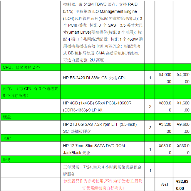 附件一:服務(wù)器型號及價(jià)格