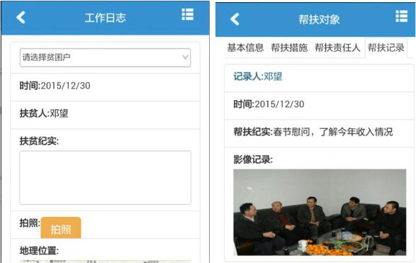 主要用于幫扶干部記錄幫扶紀(jì)實(shí)和查看幫扶紀(jì)實(shí)。