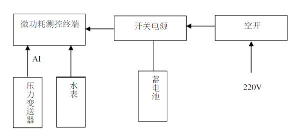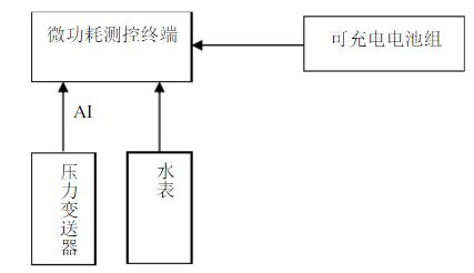 將防水外罩安裝在監(jiān)測井井壁上,微功耗測控終端放置在防水罩內(nèi)。壓力變送器信號線、水表信號線接在微功耗測控終端自帶的防水接線盒上。