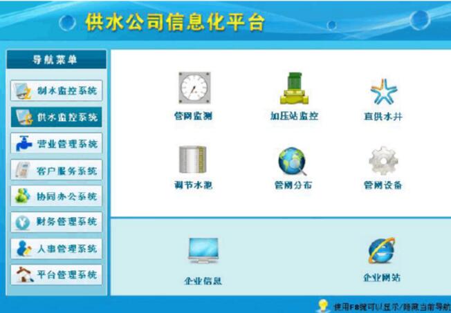 水司調(diào)度中心負(fù)責(zé)對全市供水管網(wǎng)進行監(jiān)測,具體功能如下: