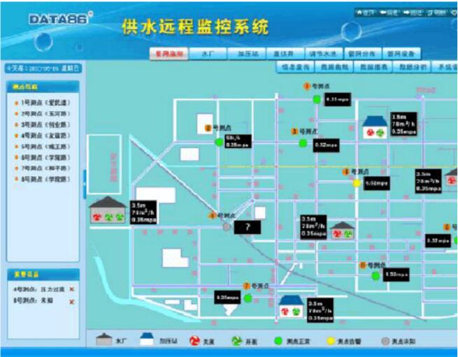 ◆ 監(jiān)測整個城市供水管網(wǎng)測點的壓力、流量、流向、水質(zhì)信息。