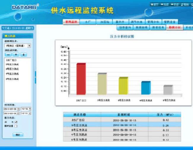 該系統(tǒng)適用于供水企業(yè)遠程監(jiān)測供水管網(wǎng),工作人員可以在水司調(diào)度中心遠程監(jiān)測全市供水管網(wǎng)的壓力及流量情況??茖W(xué)指揮各水廠啟停供水設(shè)備,保障供水壓力平衡、流量穩(wěn)定;及時發(fā)現(xiàn)和預(yù)測爆管事故的發(fā)生。