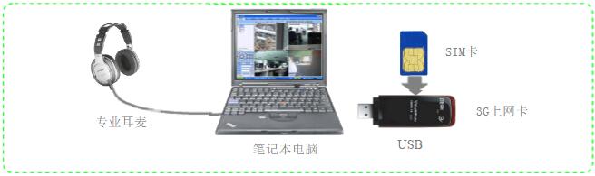 該子系統(tǒng)由統(tǒng)一客戶端(UC2)、3G接收器、SIM卡、筆記本和專業(yè)耳麥等功能組件構(gòu)成。向網(wǎng)絡(luò)運營商申請SIM卡號時,要求支持3G上網(wǎng)和短信功能。